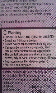 Not the clearest of pictures, but take my word for it, the third warning bullet point says "If pregnant, or planning pregnancy, seek medical advice before taking supplements." Is it just me, or is that conflicting advice for a product called "Mum & Bump"?